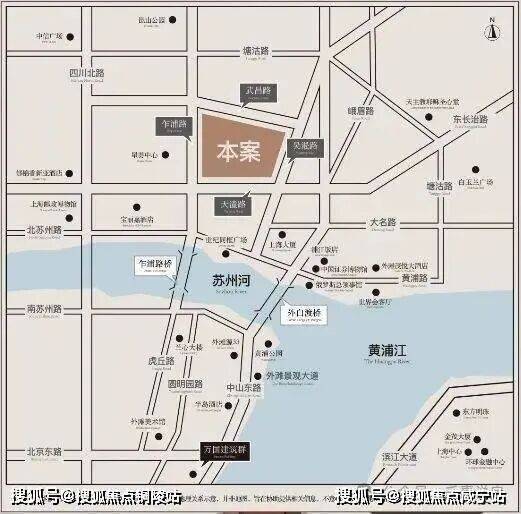 项目具体坐落于天潼路以北,武昌路以南,吴淞路以东,乍浦路以西。独占江(黄浦江)河(苏州河)交汇上佳钻石地段,距离外白渡桥仅200余米。
