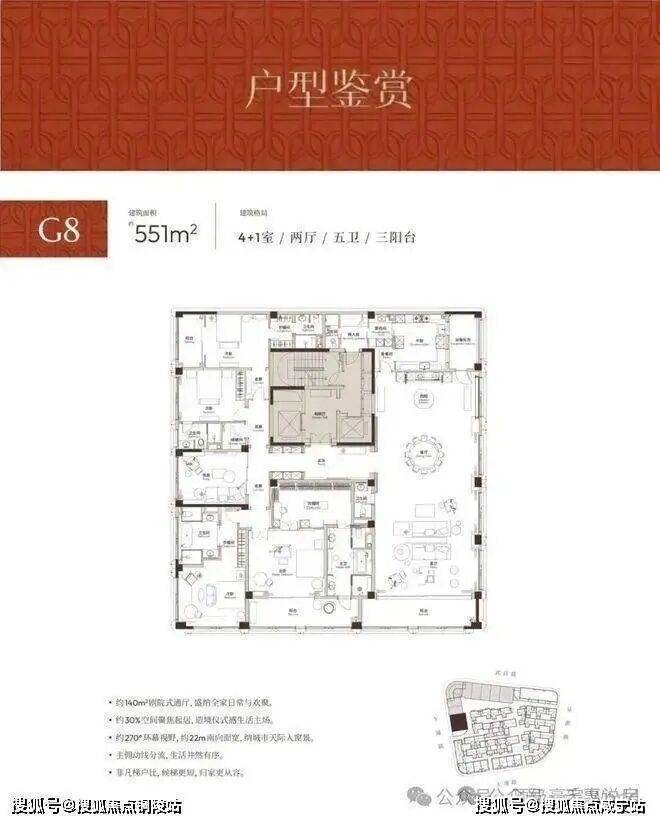 南向客厅灵动分区,双采光庭院引光入室,多卫设计便捷舒适。