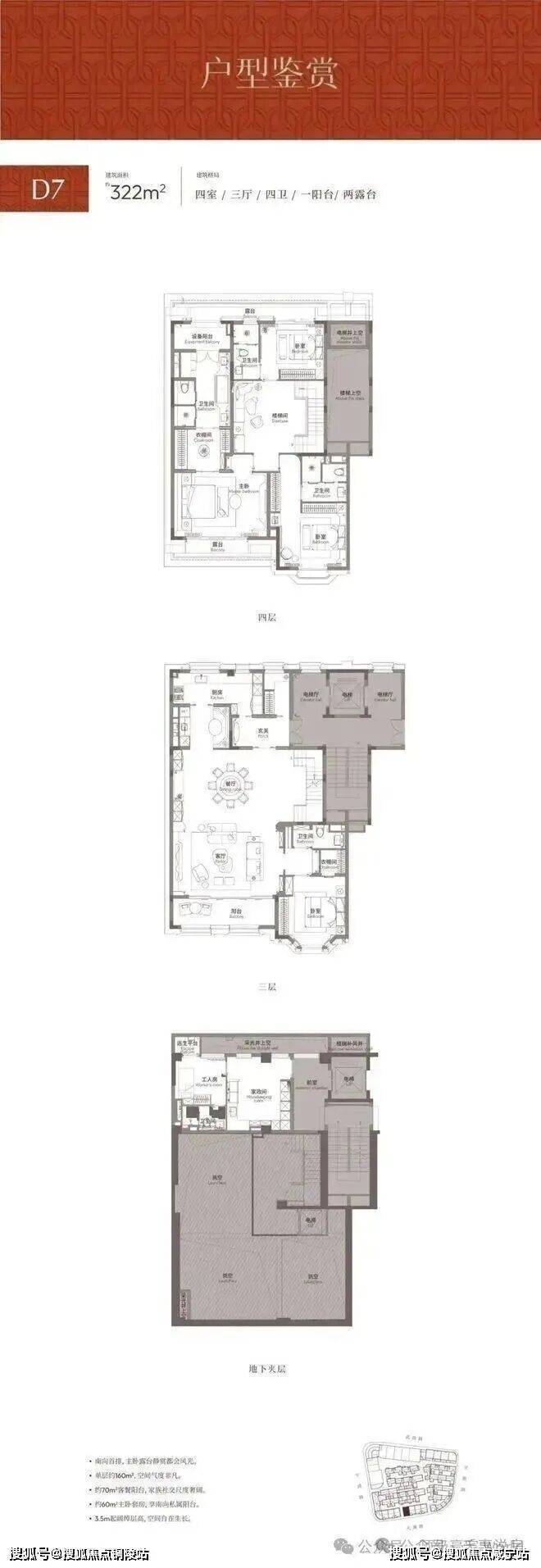 三层约3.5m、四层约3.6m层高,纵向空间感更显阔绰,舒居尺度跃然呈现。