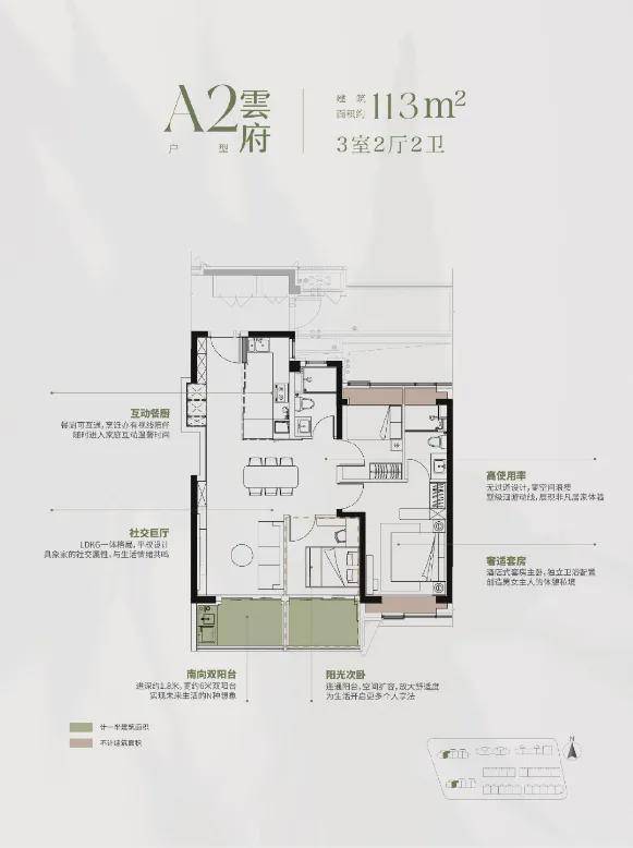 项目采用开放式布局,双阳台设计,均为1.8米左右的舒适进深,整体面积约10㎡。如果打通的话,将拥有约6米的超长横向延伸!这个空间可以被合理利用起来,成为家庭的社交场。
