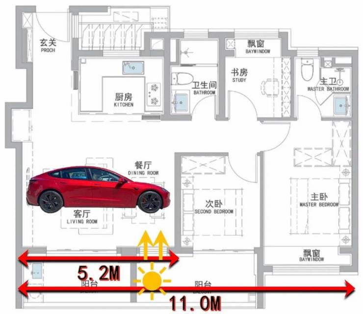 ❤️❤️招商时代潮派售楼处电话:400 - 1010 - 064❤️❤️创新性设计了约 1.5个面宽的横厅,整体面宽达到了约11米 (轴线尺寸 ) ,其中横厅面宽就有约 5.2米 (轴线尺寸) ,相当于把 Model 3横着放进来。❤️❤️招商时代潮派售楼处电话:400 - 1010 - 064❤️❤️