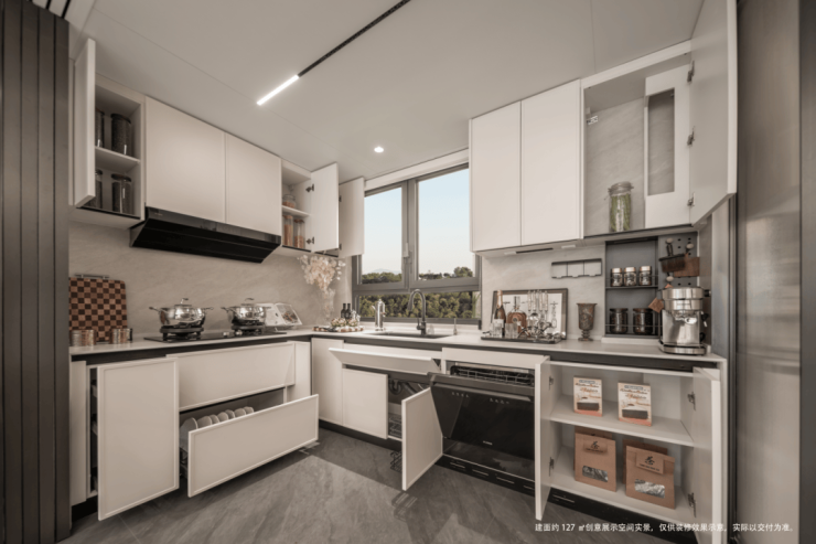 ❤️❤️招商时代潮派售楼处电话:400 - 1010 - 064❤️❤️无界厨房移门采用上轨道设计,三联动移门的设计,可开可合,在不使用厨房时可以做到最大化的利用空间。❤️❤️招商时代潮派售楼处电话:400 - 1010 - 064❤️❤️