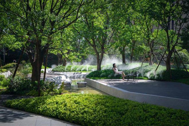 项目整体以摩登东方为核心造景理念,营造一环两轴N组团的景观布局,将花草、树木、流水、山石、景墙编织成序曲语言,在浮躁与喧嚣的城市中,用宁静温润的语言将摩登东方的惬意美好娓娓道来。