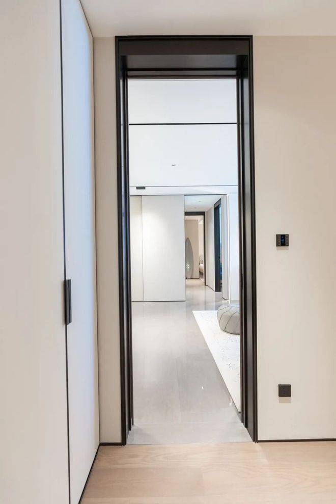 走到样板间门口,这个顶天立地的门,通透感极强。