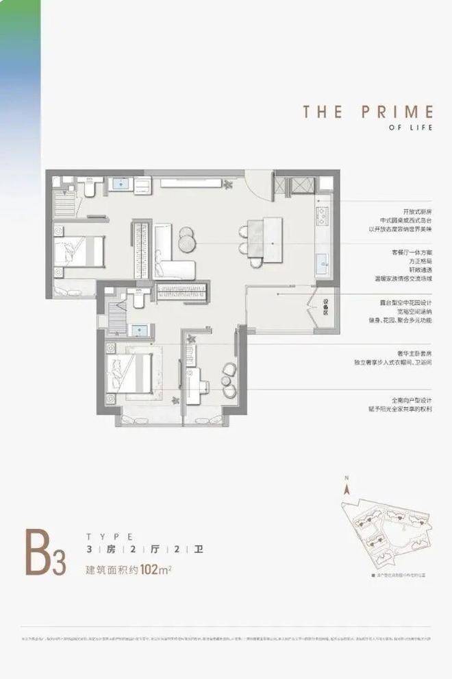 ▲ B3户型丨102㎡丨3房2厅2卫
