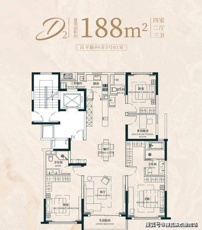 建面约176㎡4房2厅2卫户型:昌平云岸预约热线☎:400-8080-420✅✅