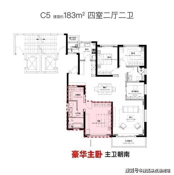 而且你仔细看,2个套房分列客厅左右,并且配置极为相似。