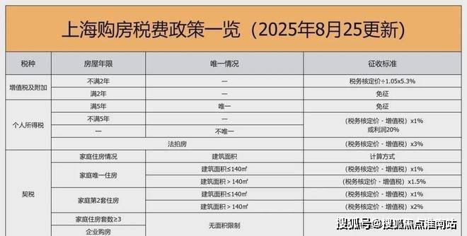 三、上海2025年8月最新购房税费政策