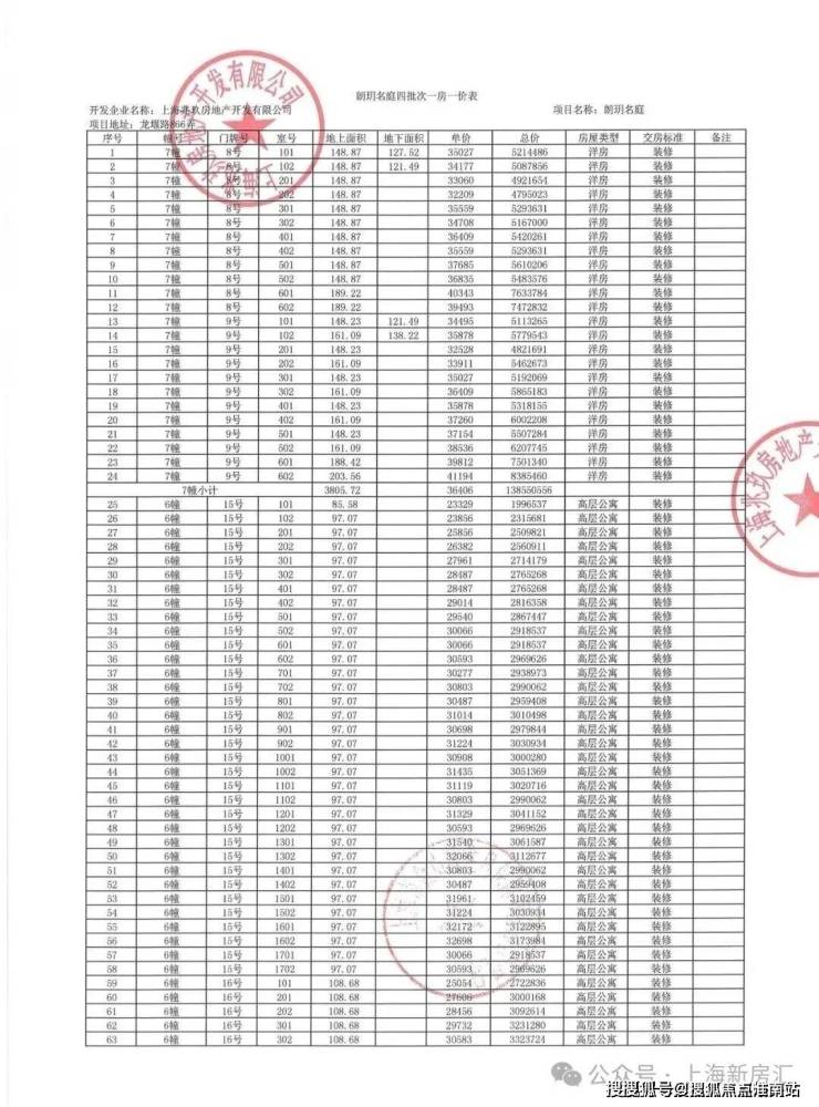 项目一房一价表