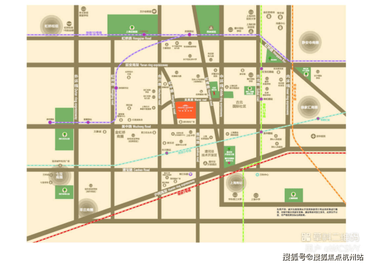 交通配套方面:项目地处长宁、徐汇、闵行三区交汇的金虹桥板块的核心区位,拥有多维立体的交通,延安高架、中环线、外环线环伺。