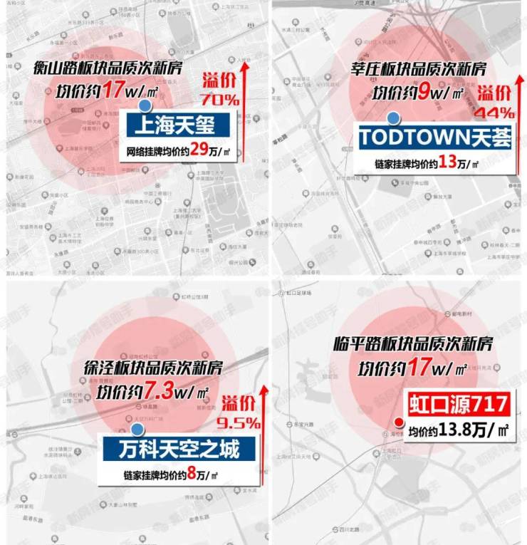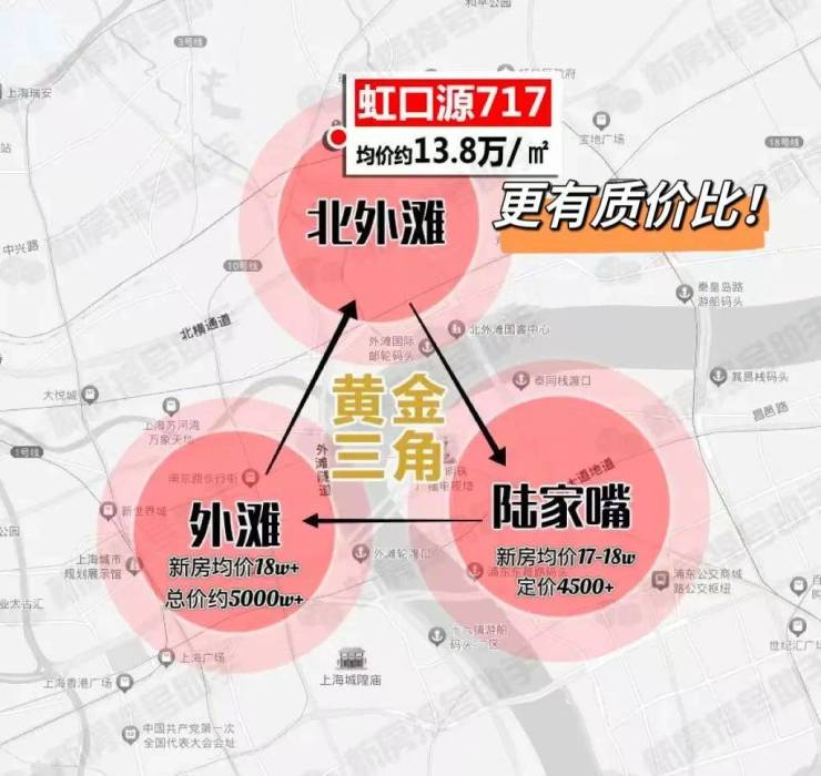 尤其是金茂&庆隆地块,它与虹口源717的直线距离不过约700米,价格差即将到达4万多/㎡!这也意味着未来想入手虹口新房,门槛势必提升一大截。
