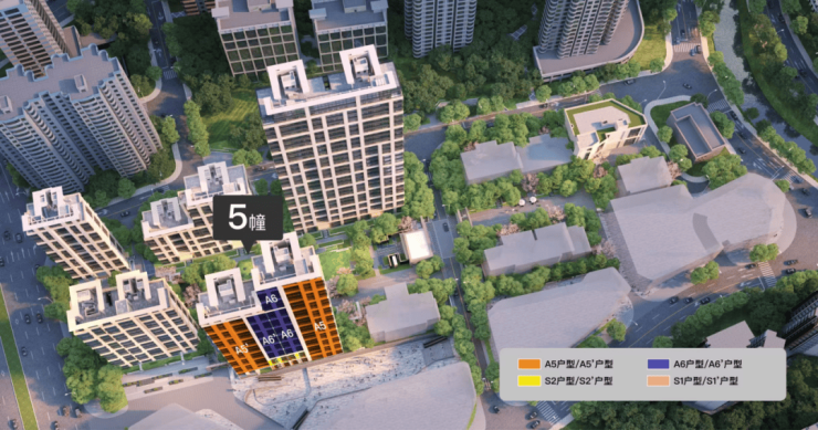 值得注意的是,5号楼属于全小区视野景观最好的楼栋之一,北侧就是小区的中央花园,南侧是4-5层的商办+屋顶绿化,前后的视野都非常开阔。