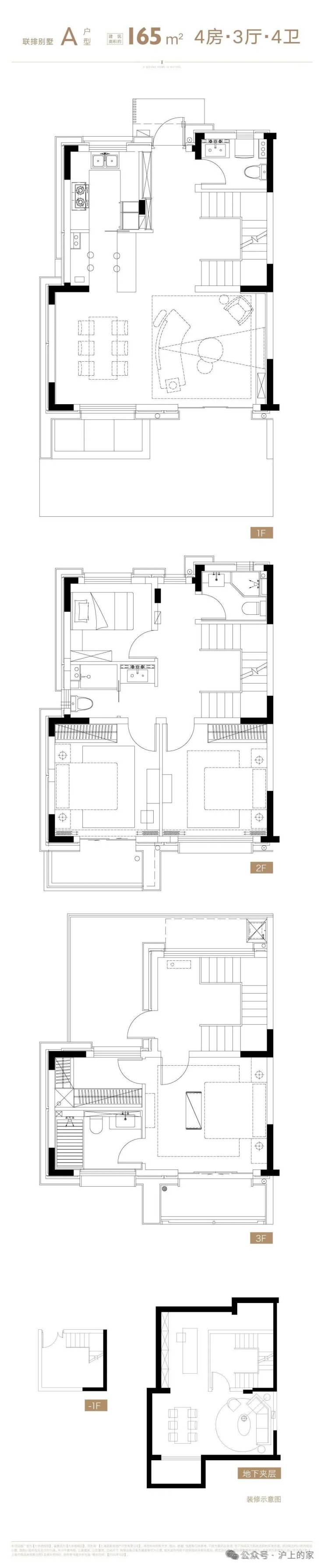 主要为四联排户型约158-165平左右,西侧紧挨规划的商业部分