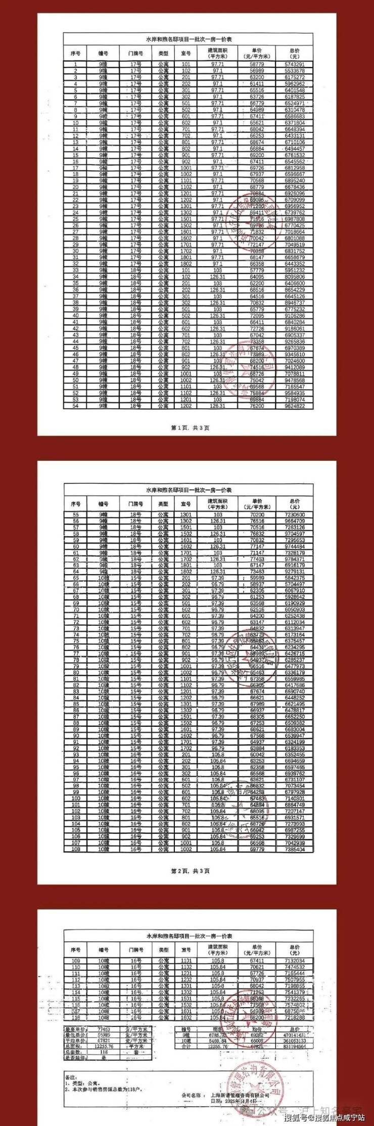 附一房一价表: