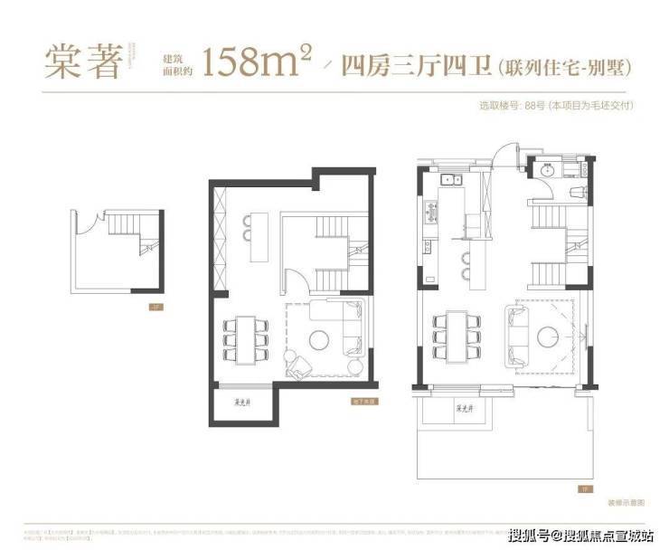 联排建面约158-165㎡,地上三层+超大面积地下空间,地下采光井+星空露台,有天有地!