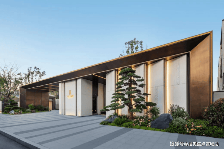 选用温润典雅的天然石材作为基底,中轴对称式布局彰显高门气魄,水景内涌泉汨汨且搭配泛星灯光,转角处的精美艺术景墙,邂逅尊崇归家仪式感。