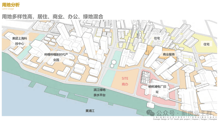 项目位于杨浦滨江核心段,土地价值兼具 “历史厚度” 与 “产业高度”:一方面,基地内保留上海煤气公司杨树浦工厂旧址(含储气柜、职员住宅),是杨浦 “工业遗存博览带” 的重要节点;另一方面,紧邻哔哩哔哩总部,周边聚集美团、字节跳动等企业,属于 “长阳秀带” 3000 亿级在线新经济核心区,这种 “遗产 + 科创” 的组合在上海滨江板块中稀缺性显著。