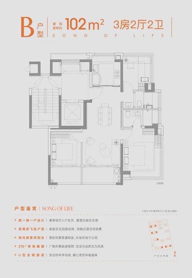 户型普遍采用南北通透、全明格局,并创新性地引入了“类一梯一户”设计、南向双阳台、270°转角飘窗等元素,显著提升了空间的采光、通风、实用性和仪式感。