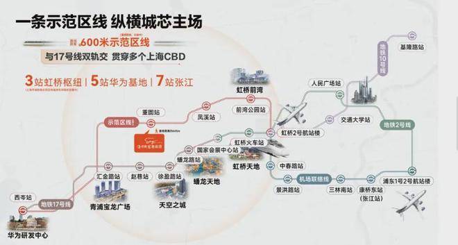 依托示范区线,2站可达拥有新虹桥国际医学中心的前湾,汇聚复旦大学附属华山医院等十余所知名医疗机构;向西2站至青浦新城,亦有复旦大学附属妇产科医院等重磅医疗资源在建或规划中。