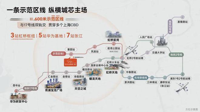 项目直线距离在建的示范区线重固路站仅约600米,是名副其实的“正地铁房”。示范区线作为串联长三角一体化与大虹桥两大国家战略的轨交干线,预计2028年通车,届时从项目出发,2站可达前湾,3站直达虹桥商务区,并能快速换乘接入上海市中心及张江等核心产业区,通勤优势显著。