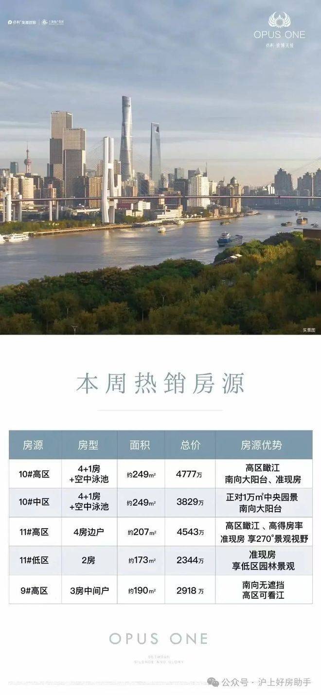 最新消息:黄浦江核心段,一线滨江实景准现房!【保利世博天悦】加推3#楼,前期少量建面约174-250㎡3-5房,建面约400㎡顶楼复式!总价约2300万起!可直接认购