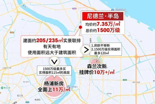 以1500万级预算为例:杨浦新房单价全面破11万/㎡,此预算仅能买到建面约130㎡的高层,即便实得率再高,实际使用面积也仅115㎡左右;