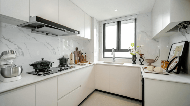 厨房配备了更适合中国家庭的全套方太厨电(或同等品牌),包括燃气灶、油烟机(智能化设计,可手势开启)、15套大容量洗碗机;林内(或同等品牌)燃气热水器、日本伊奈(或同等品牌)的水槽和龙头也是标配!洋房还有德国悍高(或同等品牌)品牌下拉篮。
