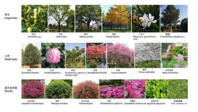 四季更迭的景观植被巧妙布局,共有 20多种乔木、小乔、灌木等植物种类,营造出“四季有色”的美妙景象。