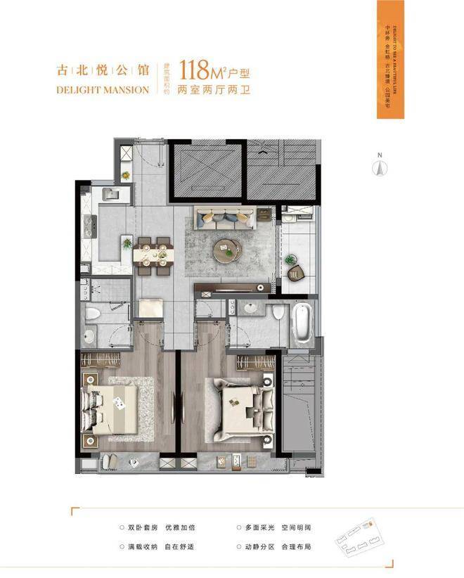 古北悦公馆项目匠心打造建面约51-70㎡的一室户型(总价非常友好)及约118㎡的两室户型,恰逢其时地响应了新上海人首次置业更优区位的愿望,同时也可以满足了改善型购房的生活需求。