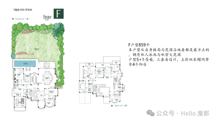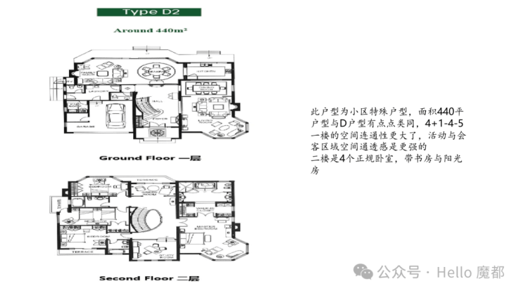 纯地上两层,建面约850㎡(7房4厅6卫)