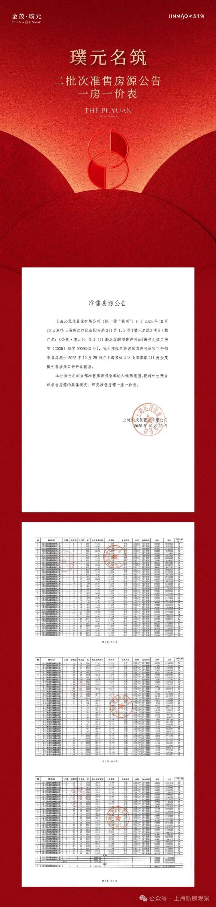 最新消息!上海2025年首个地王“瑞虹地王”金茂+庆隆瑞虹项目正式定名「金茂·璞元售楼处电话:400 - 1010 - 064☑️☑️☎️☎️」首开售罄!三期加推57套建面约200㎡4房;11月15日已过会均价16.81万/m²!售楼处线上火热预约中!