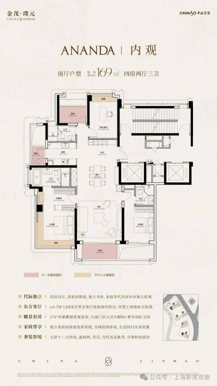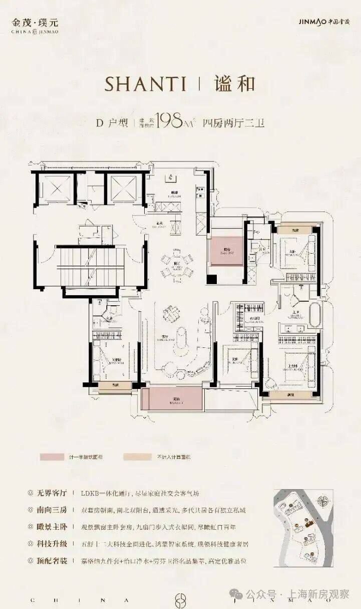 据悉,产品体系,金茂上海第一个TOP级「璞系」+「科技住宅」作品,最快4月底展厅,6月份样板间,7月底首开,9月份实景示范区(会所等)开放。