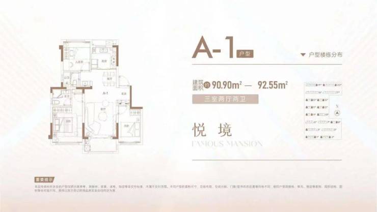 户型和套数:洋房:90平 3房2厅1卫:231套