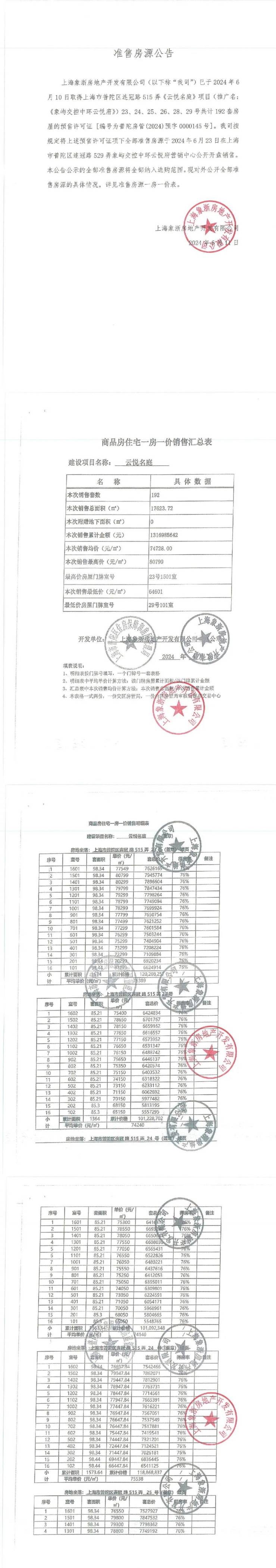 最新一房一价表:
