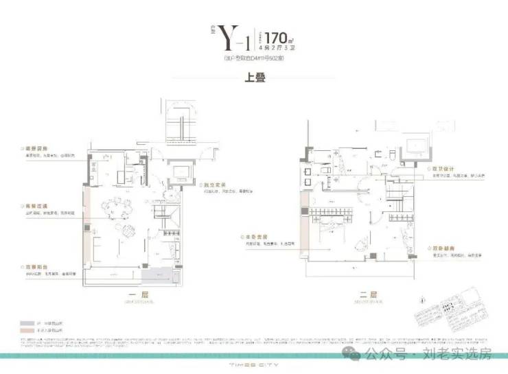 一般上叠只有一个北向露台+一个南向阳台,仅此而已。