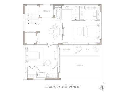 二层:双套房设计,其中一间卧室带露台,空间开阔,采光充足。