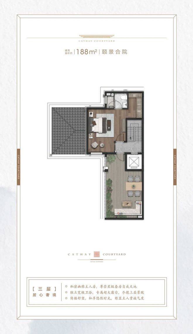 泰禾海上院子建筑面积约99-188㎡臻品合院,将传统文化礼序与时代精神融入其中,延展出从整体格局到细微枝节都与当代名流相契合的生活语境。一座院墅,三餐四季,以相守的同堂,承载三代一世的温情岁月。