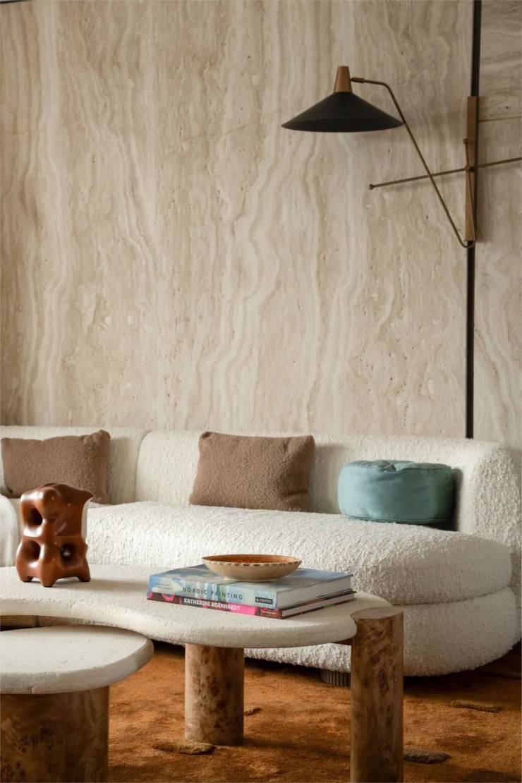 现在开发商都在卷奢材,保利天奕更是卷到天际,充分考虑业主的个性化需求,在电视背景板提供了新潘多拉、云中翡翠、弗朗明戈金三种结晶釉面岩板选择,成本更高,施工难度也更大