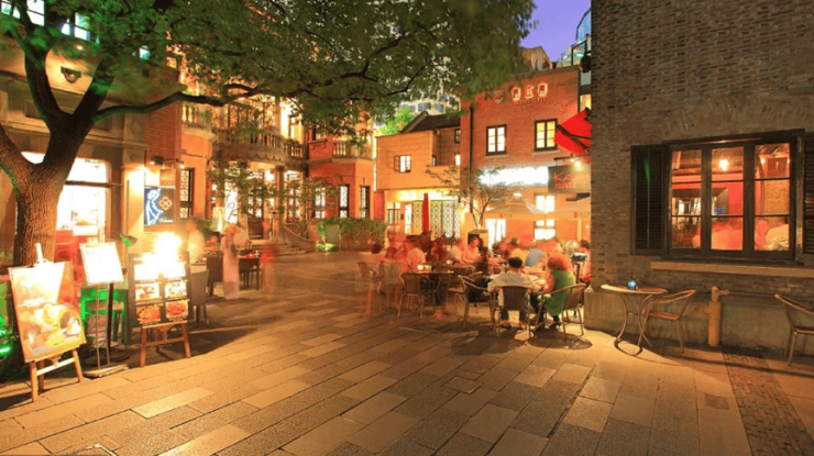 往东步行大约700米,就可以到日月光和田子坊。