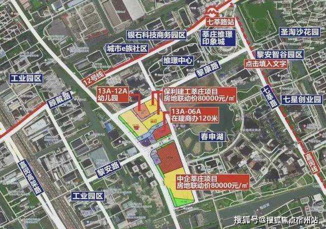 地块北面就是同一天拿地的保利发展&上海建工莘庄社区MHP0-0201单元13A-10A、13A-13A地块,房地联动价也是80000元/㎡。