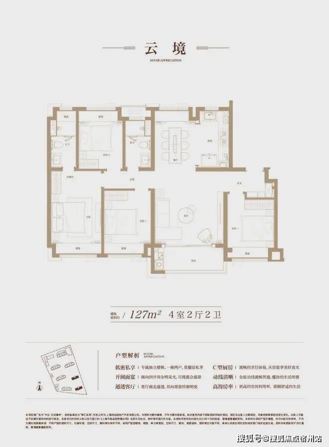 建筑约127㎡的「云境」空间内,四开间南向结合舒朗的方厅,大尺度的面宽让光赋予了生活更多的灵感。厨房U形台面,尽情挥洒味觉灵感,一体化的客餐厅创造更丰富的用餐、社交场景,从西式brunch到日式omakase,尽享味蕾的欢愉时光。 一梯两户的入户,搭配轩朗的玄关,让每一次归家,都更从容......