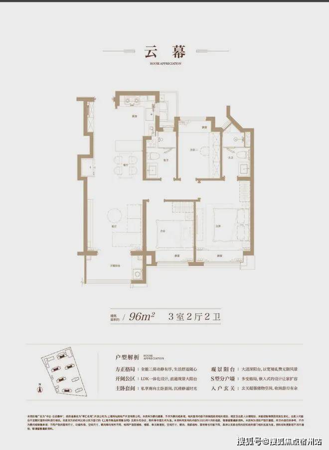 建面约96㎡,充分从居住者的角度考量生活动线、舒适度与生活感。S型的分户墙,褪去呆板,为家具预留更多的空间;LDK一体化的设计打破空间局限,解锁更多的生活场景,也拉近家人间的距离;主卧套间自在独处,生活的优雅时刻尽显……