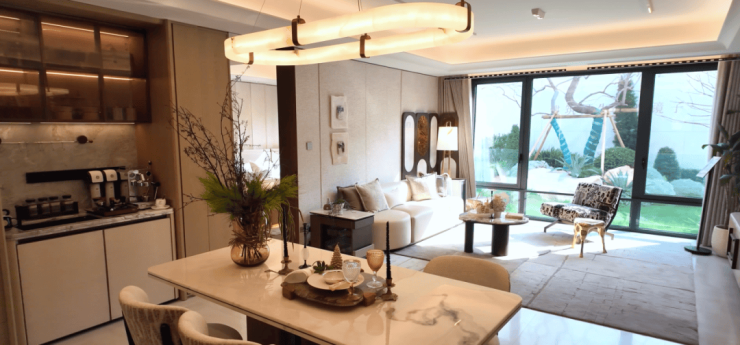 今年7月招商中旅以5.24万楼板价拿下唐镇地王后,壹江臻邸首开推出120、140平户型,均价8.3万。