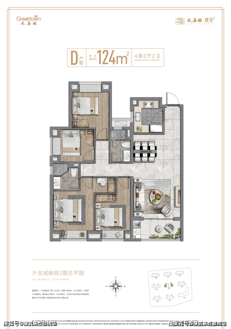 除了地段和配套实力,映辰二期在产品的打造上也别具匠心。项目由双股上市房企、2023年房地产上市公司综合实力50强——【大名城】匠心打造,传承“紫金系”精工品质,在深刻洞察时代青年的居住需求后,二期新品在一期的基础上,进行多维度的升级,敬献亲水活力社区。
