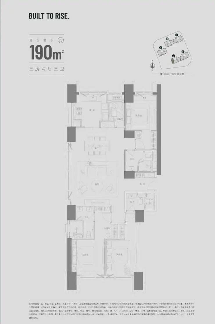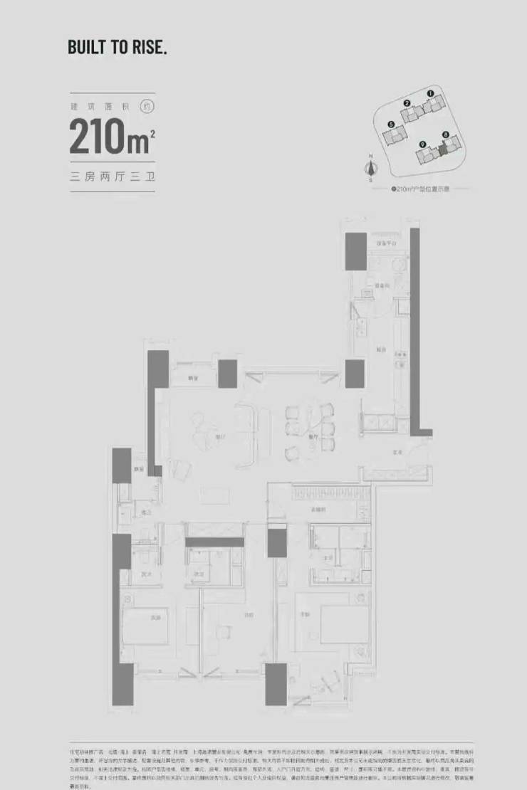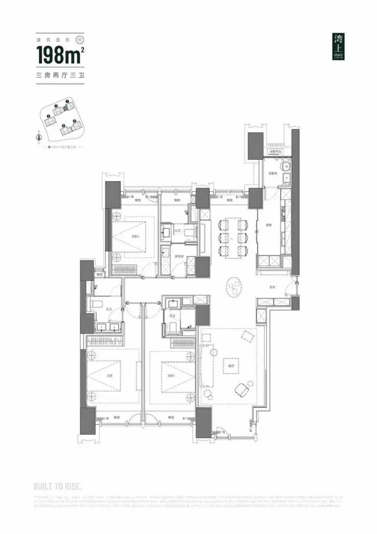 建面约198㎡三房两厅两卫