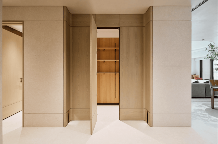 石材贴面玄关柜不仅实用,格调也是拉满了。从进门玄关开始,到各个卧室,超大进深的收纳柜,随处可见,收纳空间满分!