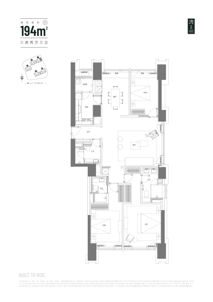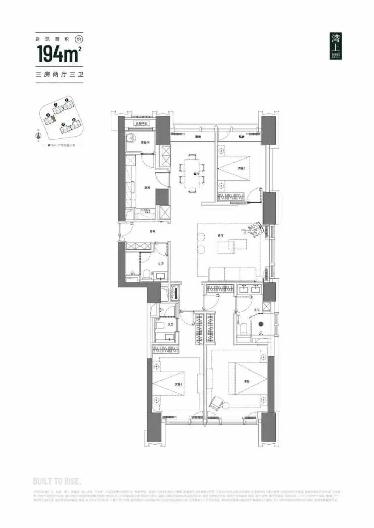建面约194㎡三房两厅两卫