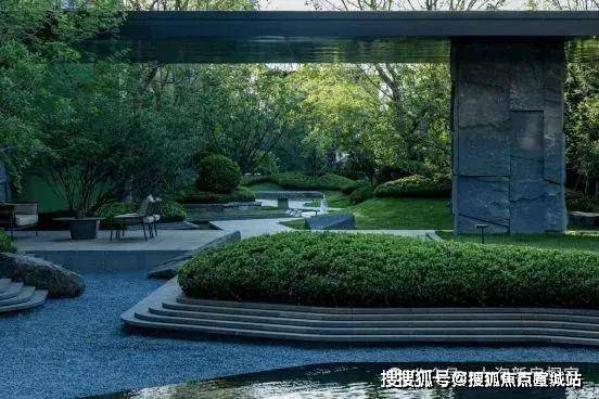 第二进——珠翠回廊:以水面景观为主体,利用富有度假感的河桦与静水面打造极具特色的前场景观,廊中水景上树阵的设计,营造出了丰富的景观空间、增添归家仪式感。