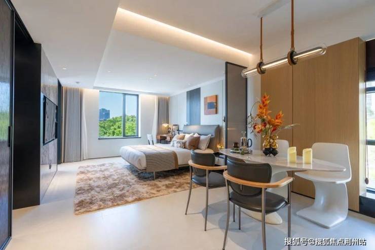 建面约71㎡户型里,是空间尺度与精致生活的动态平衡。约4.2米南向落地窗把阳光灌满整个大方厅,周末这里可变身画板、瑜伽室或沙龙主场。客厅设置电动卷帘,朋友造访时,卷帘降下秒变临时客房,尽享物超所值的空间享受。