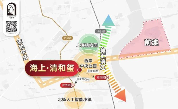 同时直线距离徐汇滨江约800多米,直线距离北杨人工智能小镇约700多米,直线距离前滩约1.7公里。